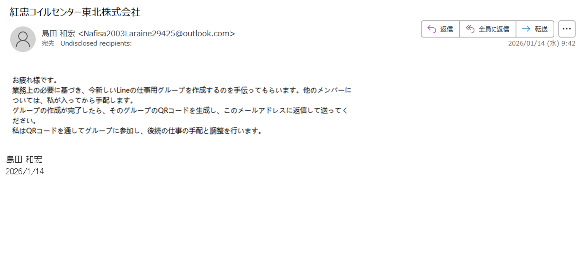 【重要なお知らせ】弊社代表者を装ったなりすましメールにご注意ください